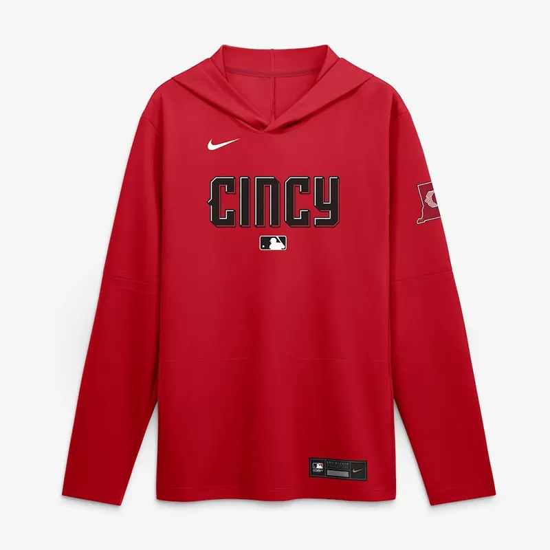 Mens Cincinnati Reds Nike Red 2026 City Connect Dri-FIT Long Sleeve Hooded T-Shirt