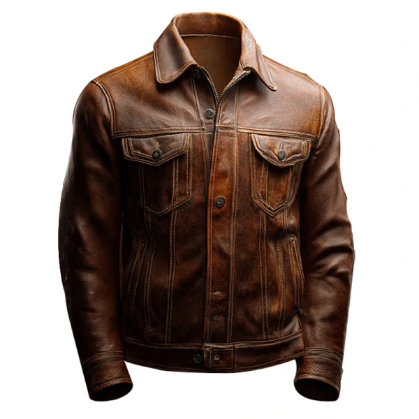 Upgrade your outerwear with this rugged **Brown Leather Trucker-Style Jacket** for men. Crafted from genuine **leather**, this classic **men’s brown leather jacket** offers timeless style and durability. Perfect for a casual, bold look.