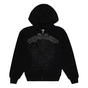 A glamorous twist on the classic hoodie, featuring rhinestone web details for a stylish, bold look.